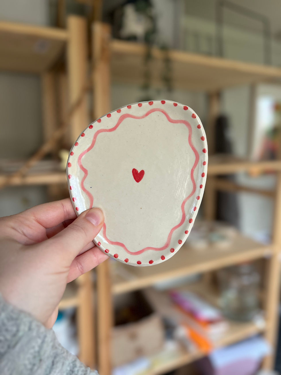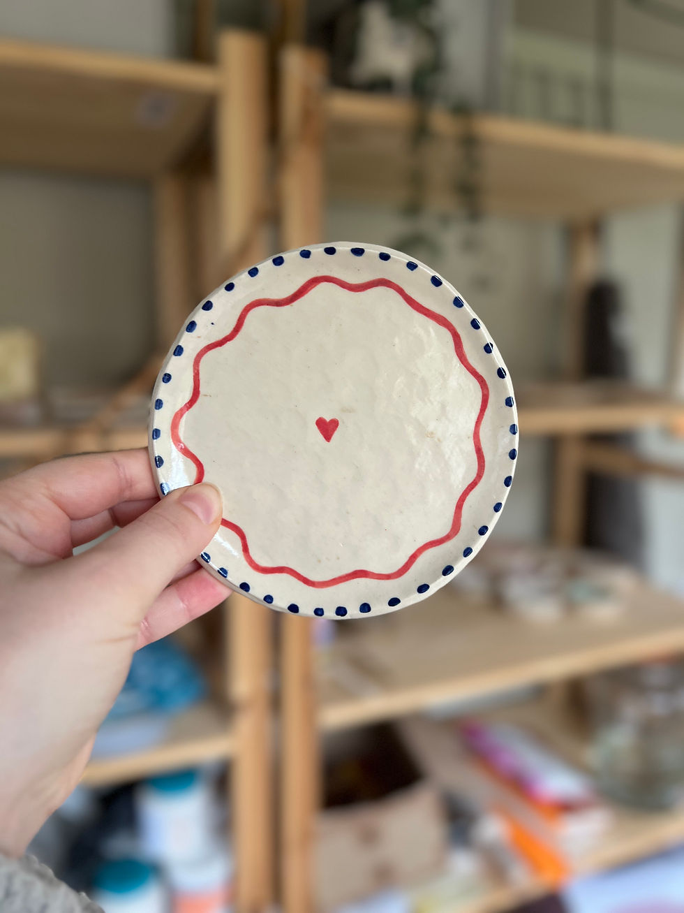 Hand Painted Plate - Navy Wiggle, Pink Heart